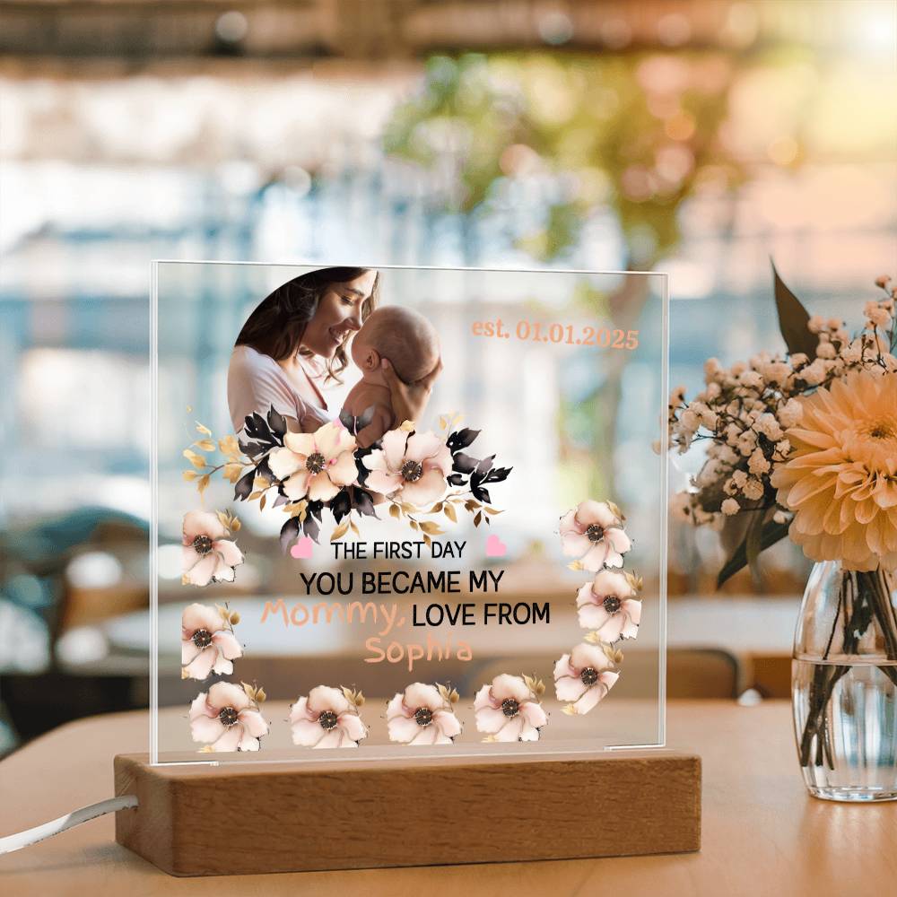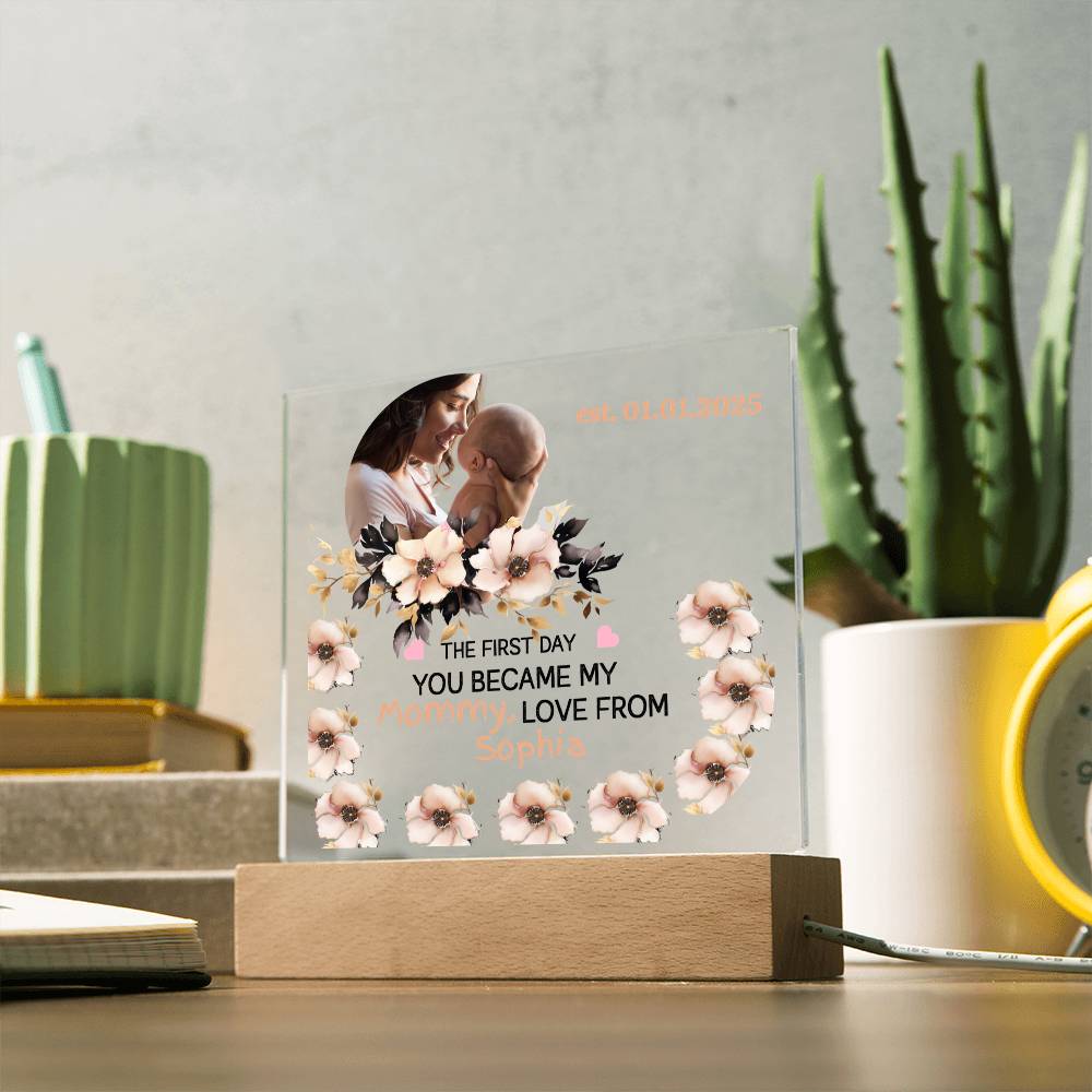 Your plaque will be crafted from premium acrylic with a professionally printed design for a polished look. It comes with a stylish wooden LED base, and you can choose between a USB plug-in option OR a cordless battery-operated option (requires 2 AAA batteries, not included). Both LED bases feature 7 vibrant colors, allowing the user to customize the lighting with various color changes and dynamic cycles.