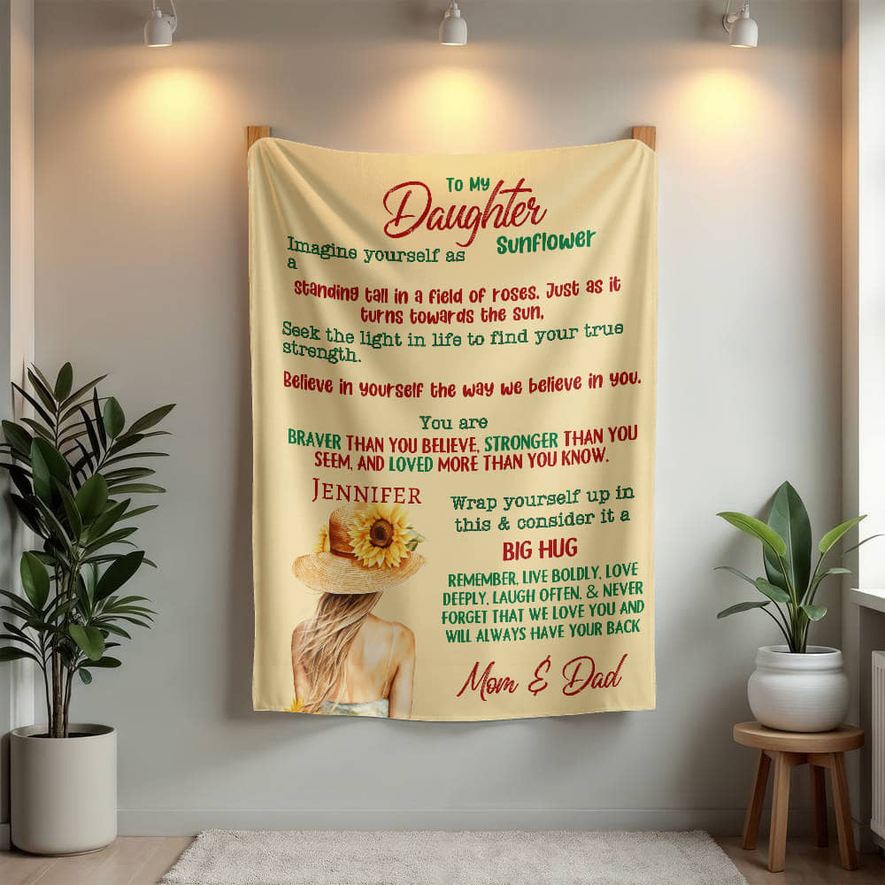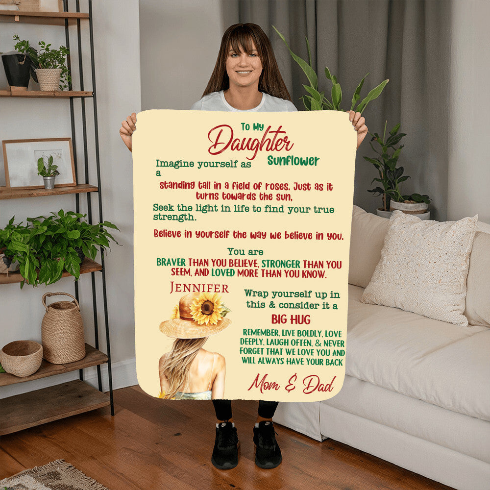 A Sunflower Letter to Daughter from Mom andDad Sherpa or Fleece Blanket (3:4)