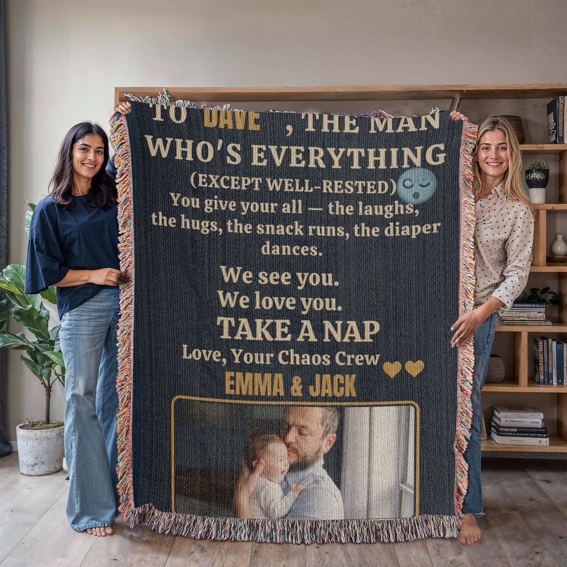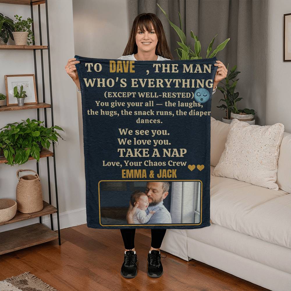 Custom Fleece Sherpa Woven Love Blanket for a New Dad