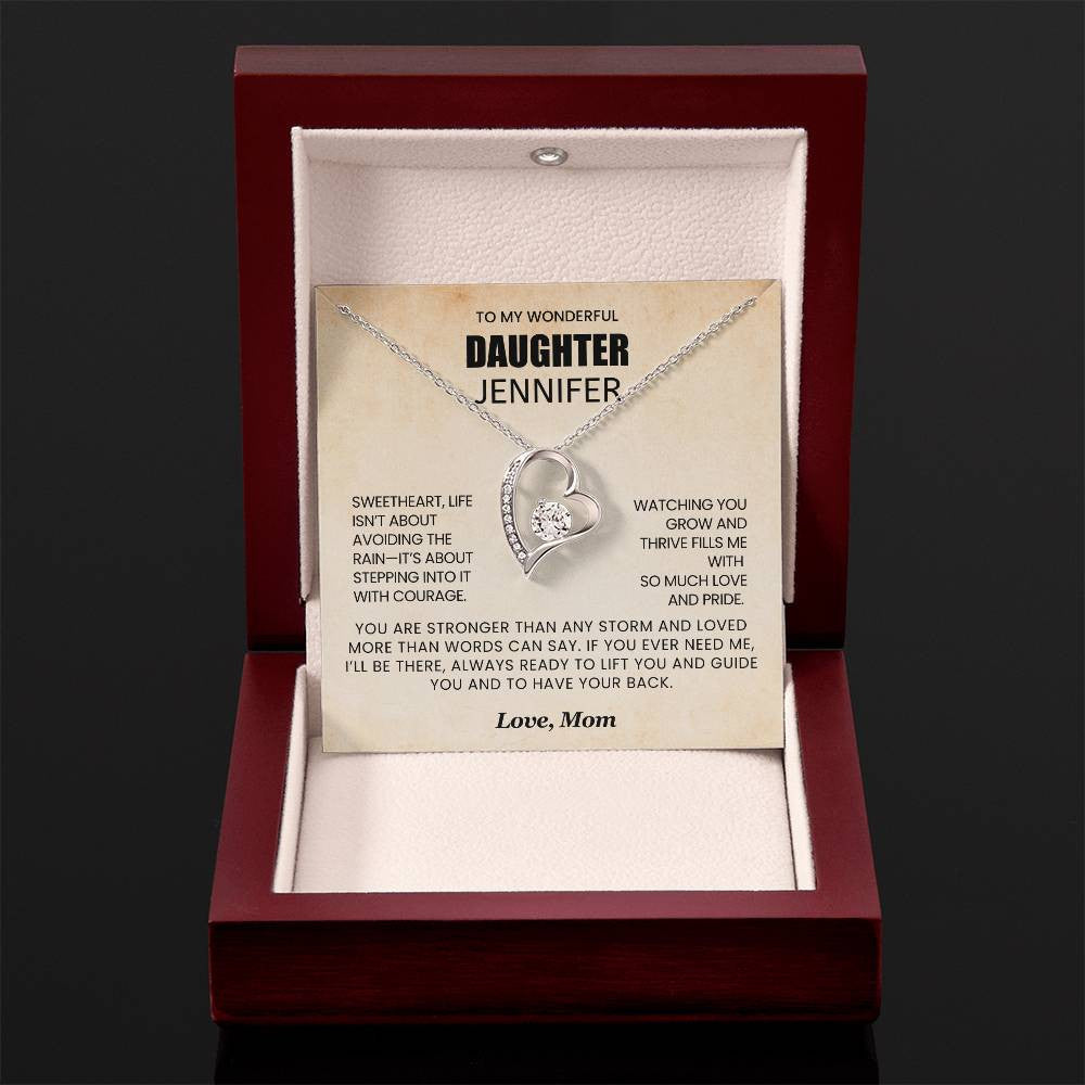Celebrate the unbreakable bond between a dad and their daughter with this beautifully personalized Forever Love necklace. Featuring her name and cherished memories turned into a stunning keepsake, this gift is more than just a necklace—it’s a heartfelt reminder of love, pride, and the special moments you share. Perfect for Christmas, birthdays, or any occasion to make her feel truly special.