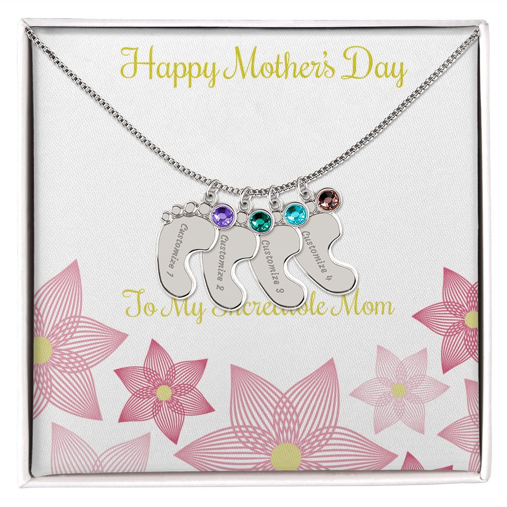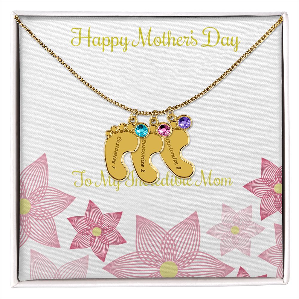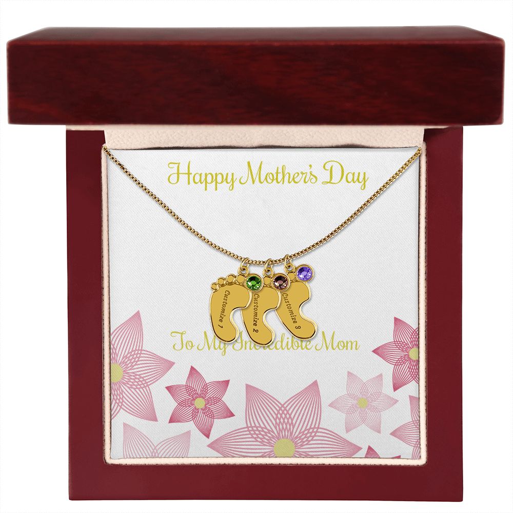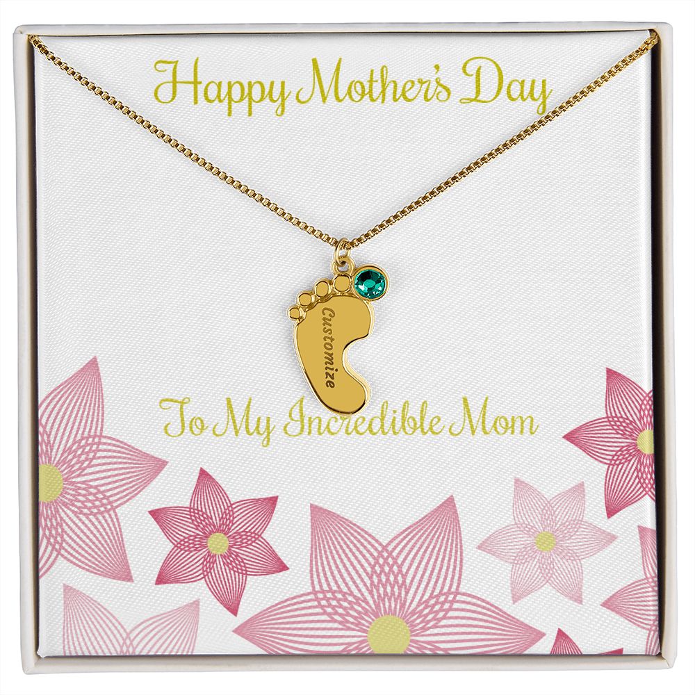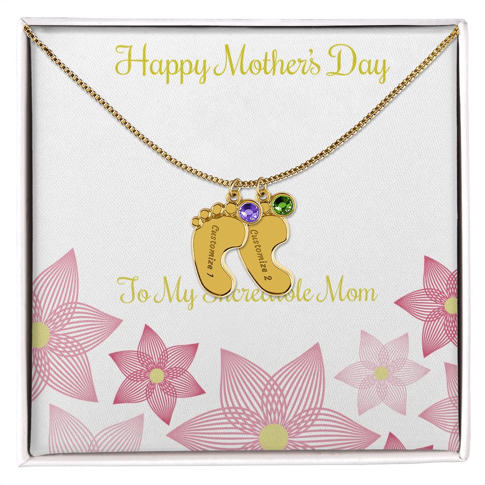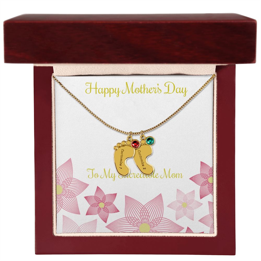 Celebrate the arrival of a newborn or cherish a precious memory with our Custom Baby Feet Necklace with Birthstone. Personalize your gift by engraving a name of your choice onto the pendant and choosing a crystal that correlates with the baby's birth month. And by picking multiple pendants, a custom present like this is perfect for moms and grandmothers with big families. This is a one-of-a-kind keepsake that will be treasured for a lifetime!