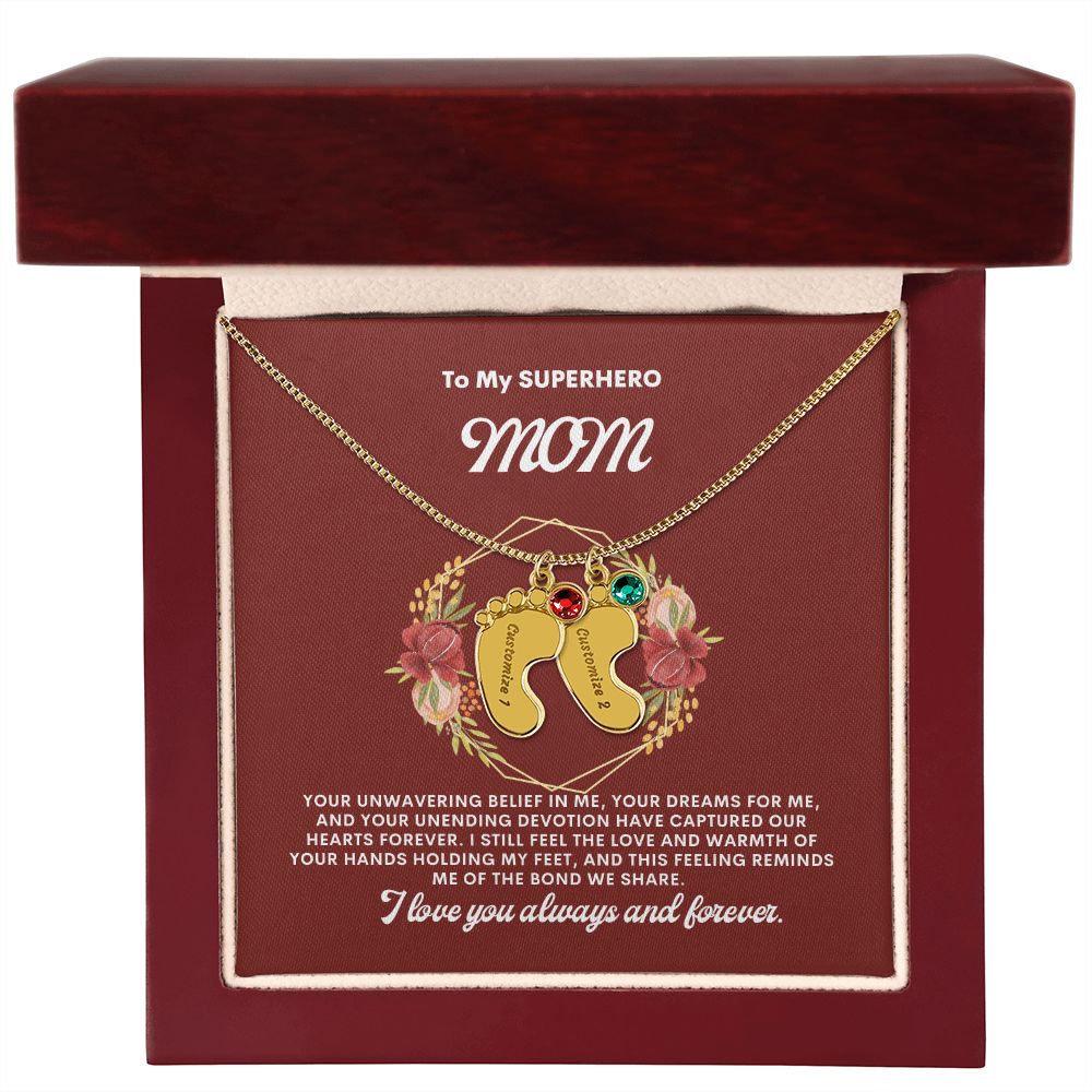 Celebrate the arrival of a newborn or cherish a precious memory with our Custom Baby Feet Necklace with Birthstone. Personalize your gift by engraving a name of your choice onto the pendant and choosing a crystal that correlates with the baby's birth month. And by picking multiple pendants, a custom present like this is perfect for moms and grandmothers with big families. This is a one-of-a-kind keepsake that will be treasured for a lifetime!