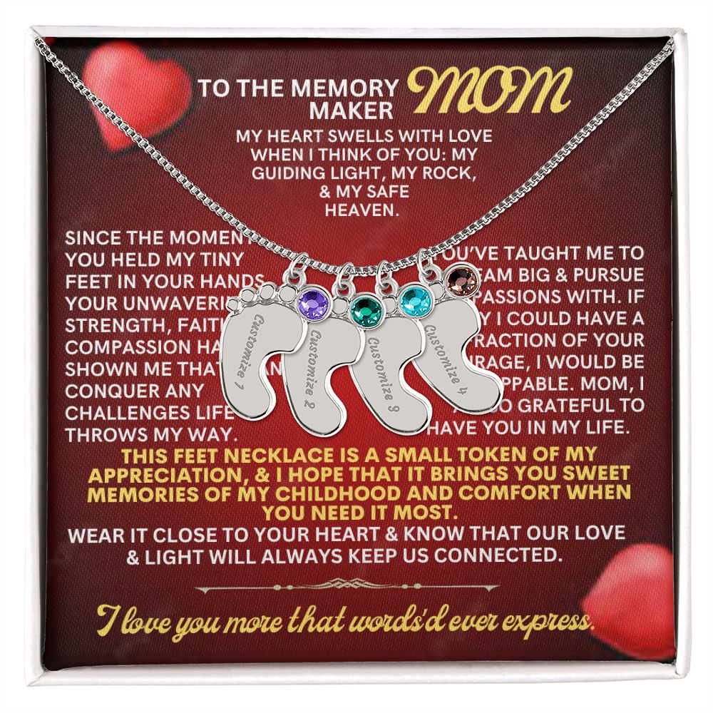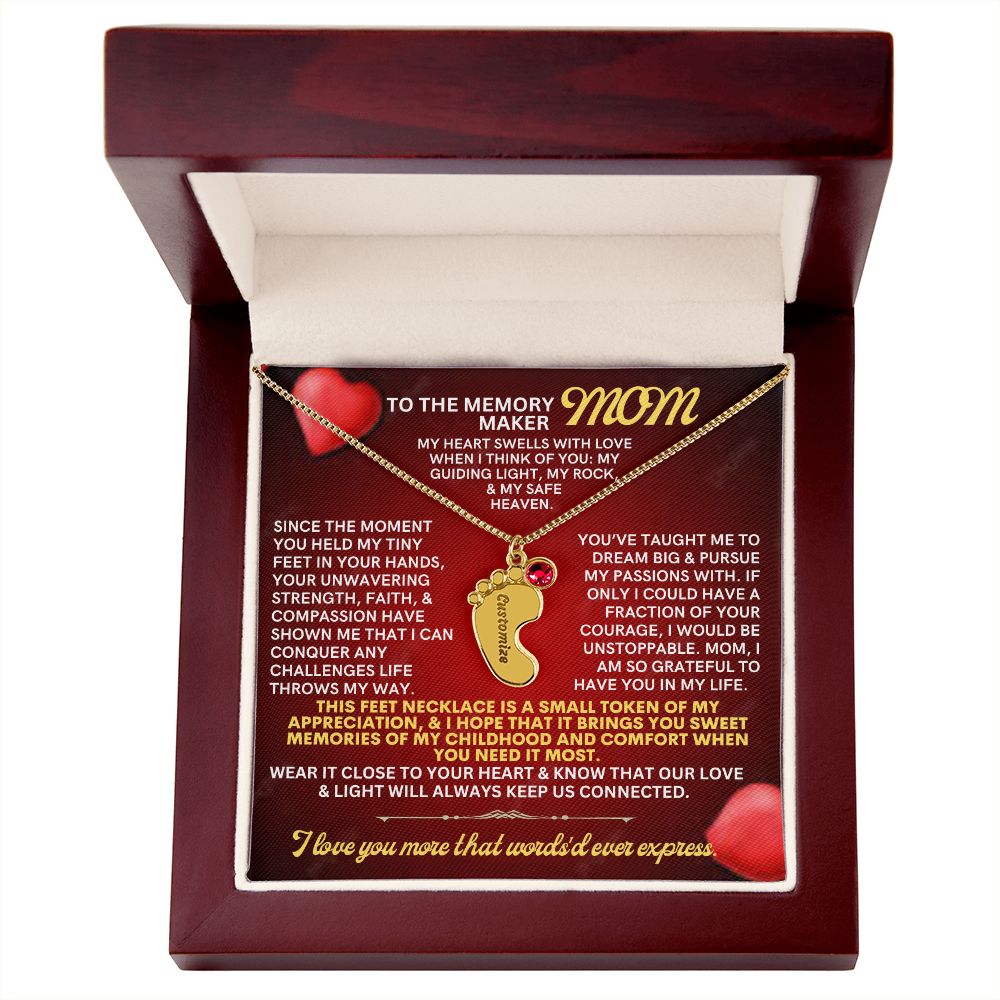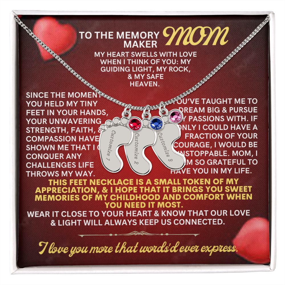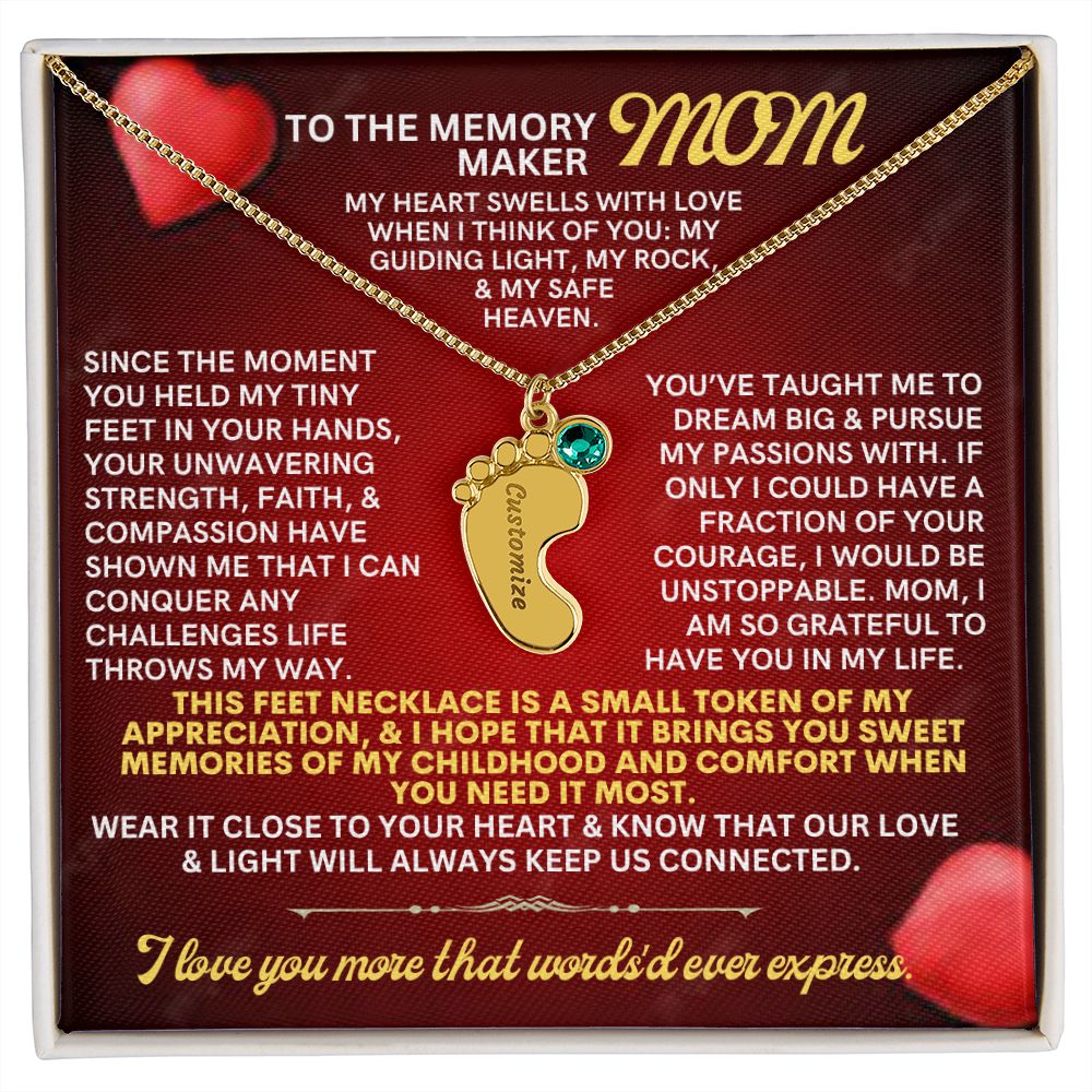 Celebrate the arrival of a newborn or cherish a precious memory with our Custom Baby Feet Necklace with Birthstone. Personalize your gift by engraving a name of your choice onto the pendant and choosing a crystal that correlates with the baby's birth month. And by picking multiple pendants, a custom present like this is perfect for moms and grandmothers with big families. This is a one-of-a-kind keepsake that will be treasured for a lifetime!