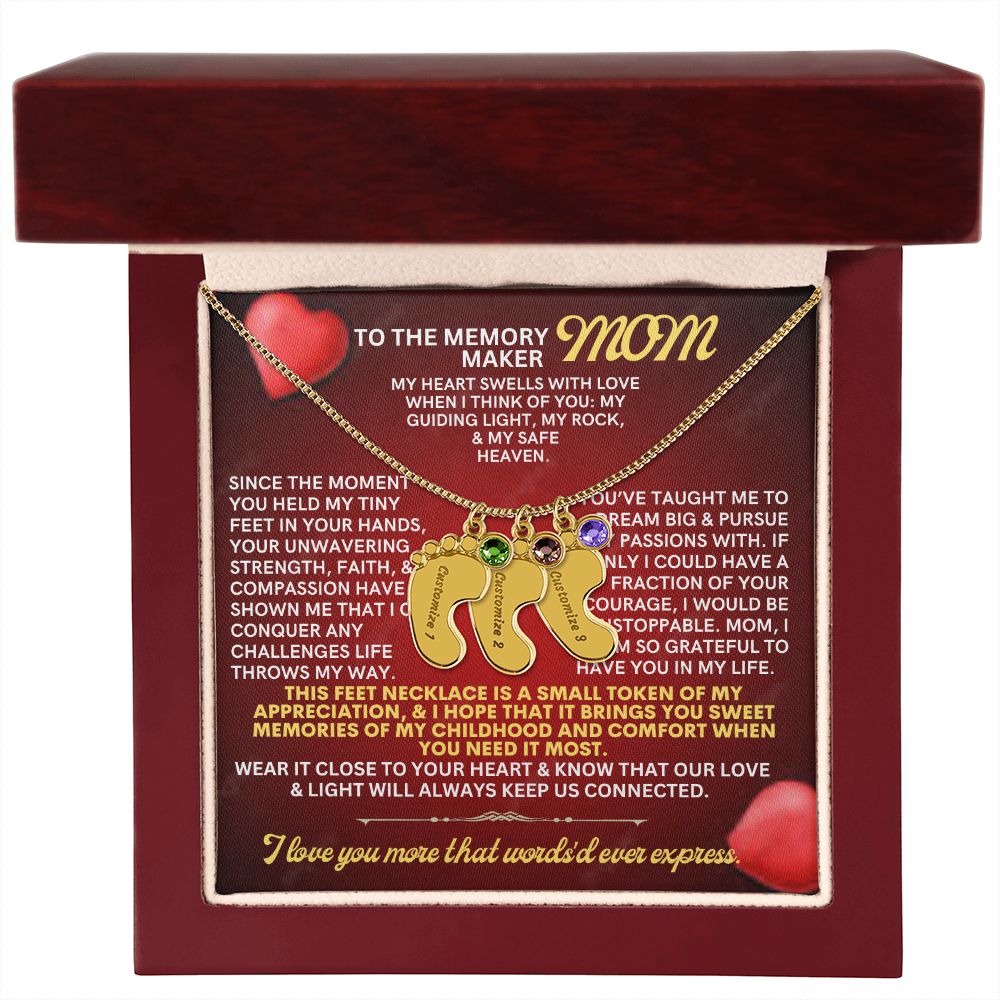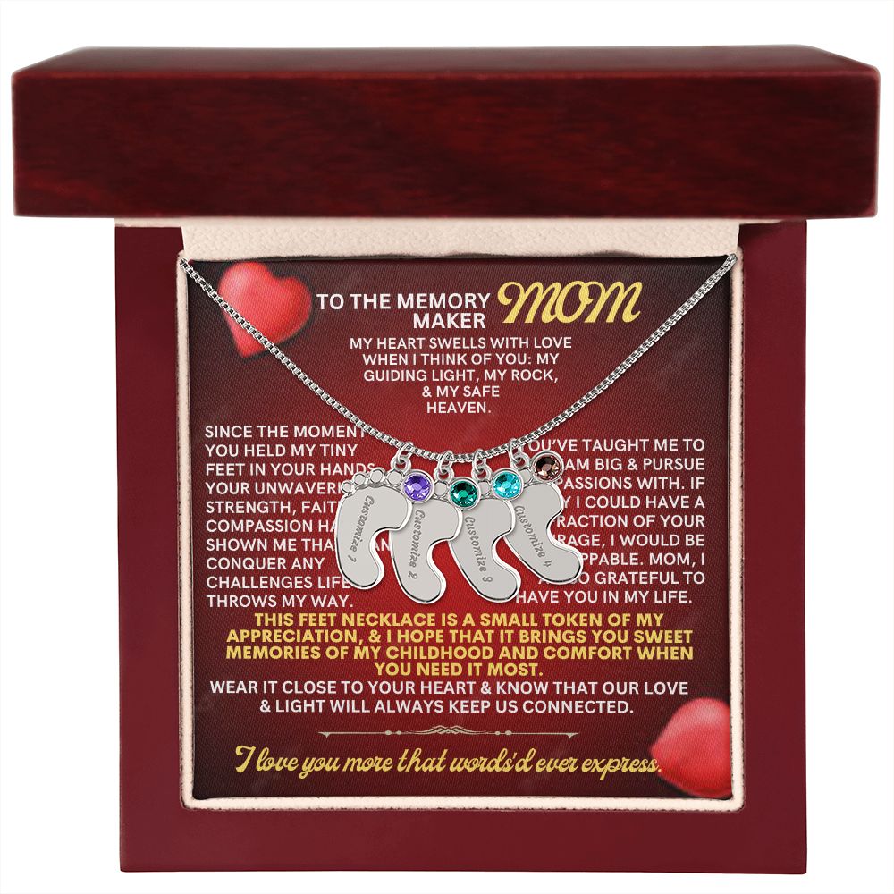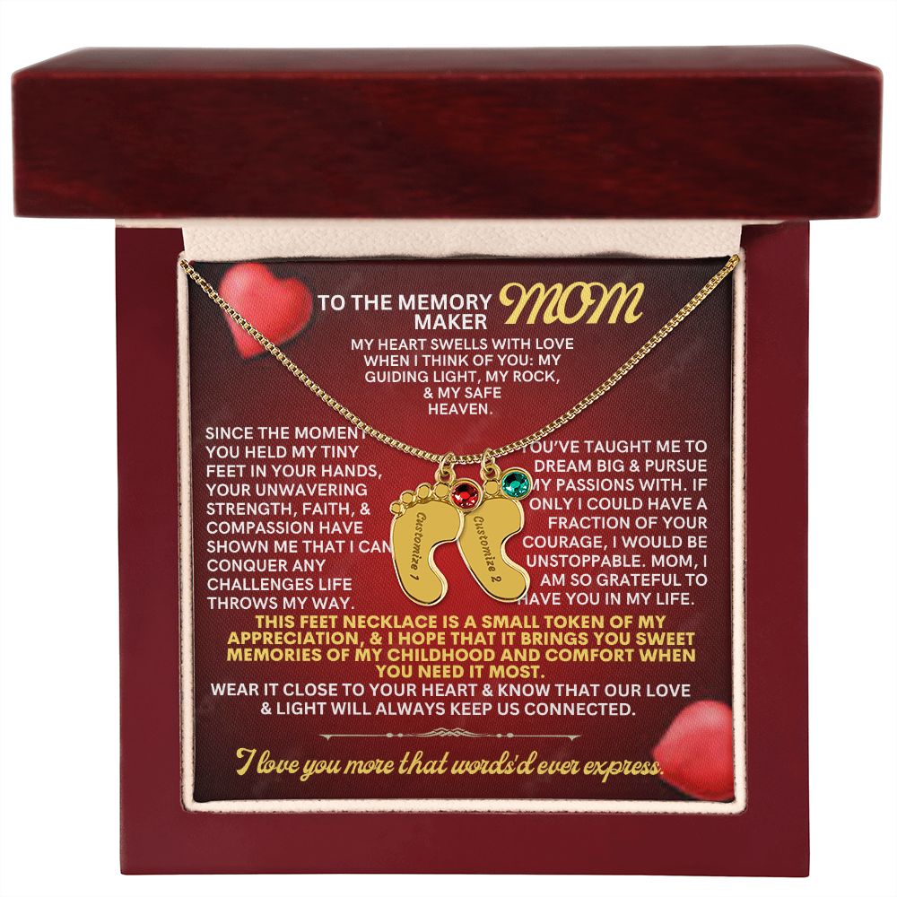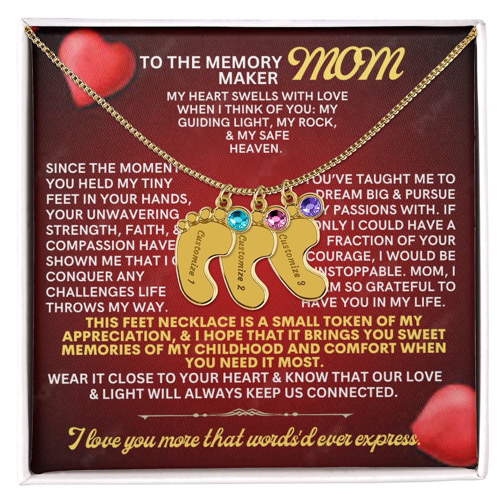 Celebrate the arrival of a newborn or cherish a precious memory with our Custom Baby Feet Necklace with Birthstone. Personalize your gift by engraving a name of your choice onto the pendant and choosing a crystal that correlates with the baby's birth month. And by picking multiple pendants, a custom present like this is perfect for moms and grandmothers with big families. This is a one-of-a-kind keepsake that will be treasured for a lifetime!