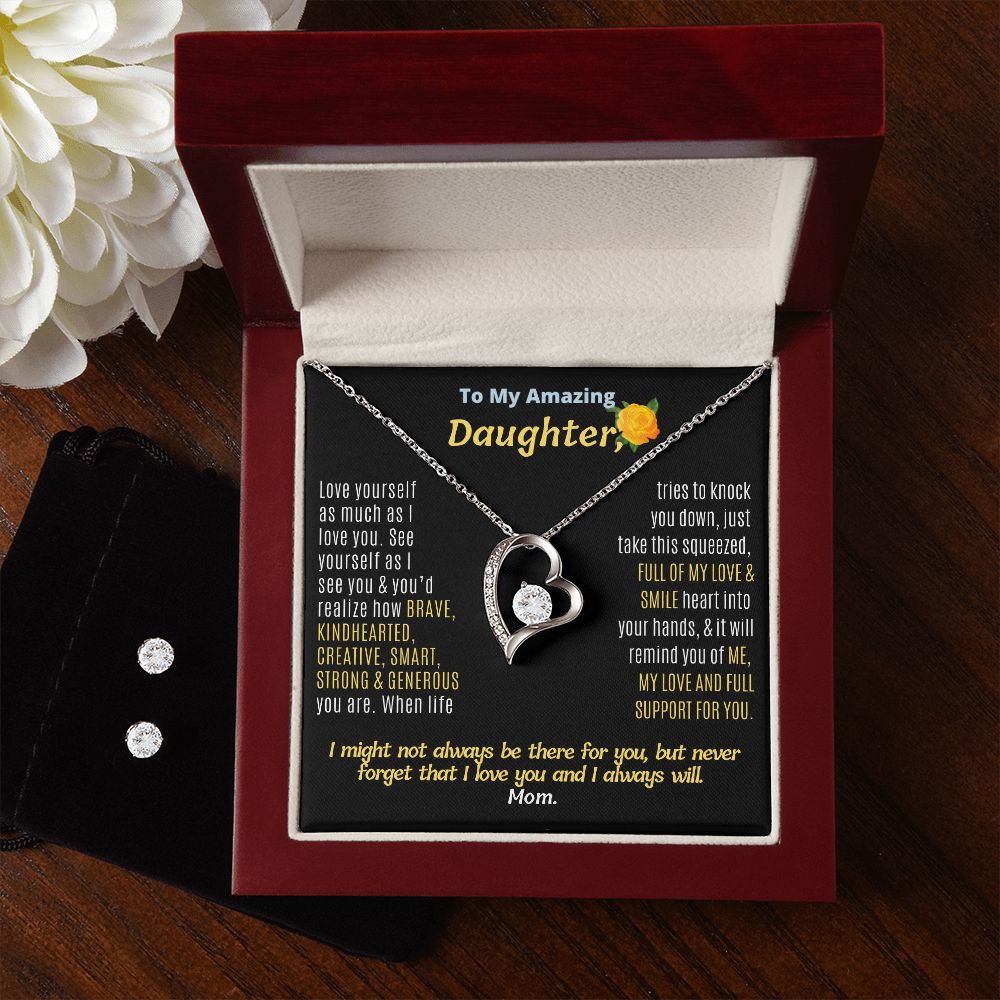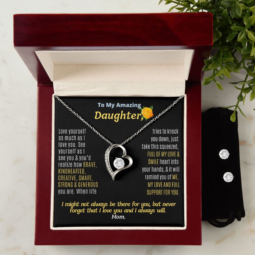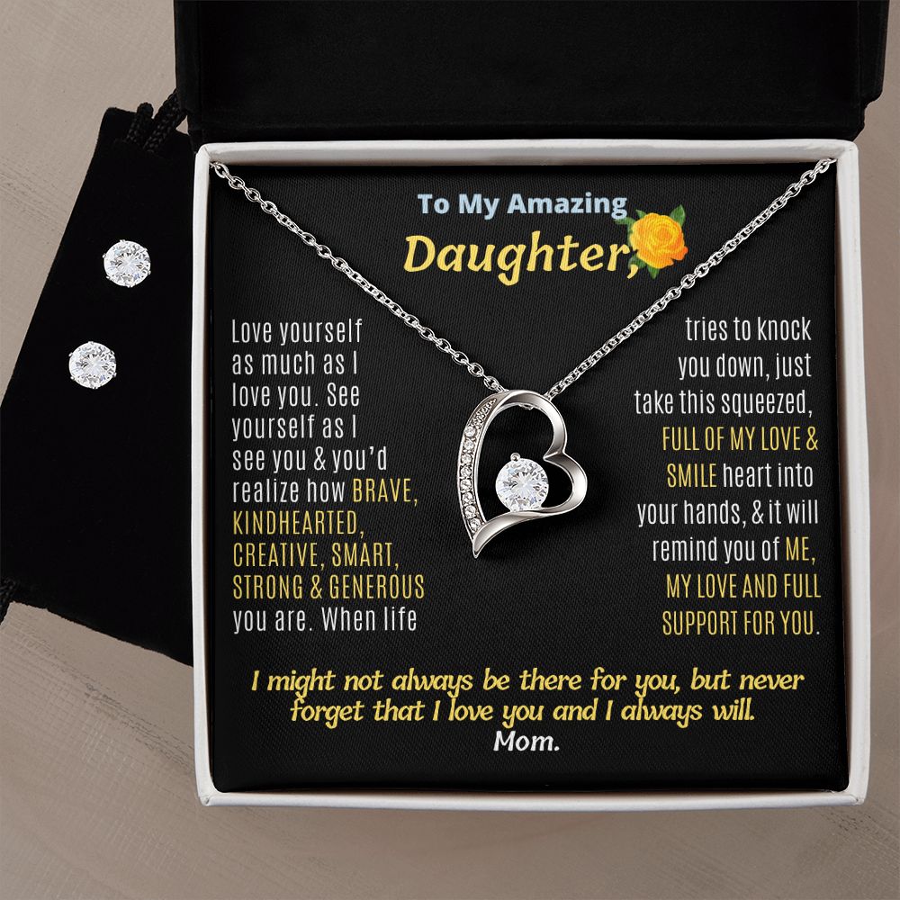 Give your loved one a gift that will make their heart swell! The Forever Love Necklace and Cubic Zirconia Earring Set is sure to do the trick. This necklace and earring pairing provides dazzling sparkle when worn together or separately, and is perfect for any occasion! Do not miss out on this special offering!