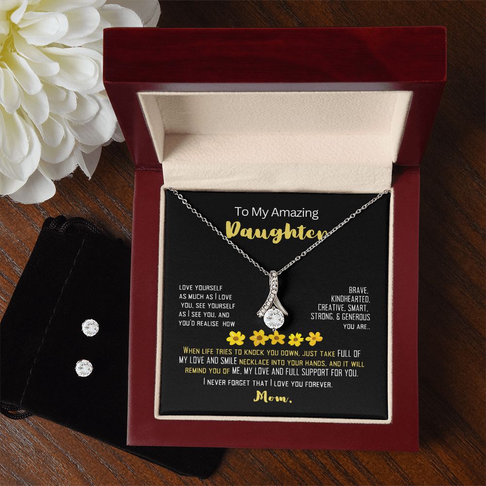 Imagine her reaction when your loved one opens this stunning gift! The Alluring Beauty Necklace and Cubic Zirconia Earring Set is a sweet treat that is sure to dazzle your special someone! The necklace and earring pairing provides loads of sparkle when worn together or separately, and is perfect for any occasion! Do not miss out on this special offering!