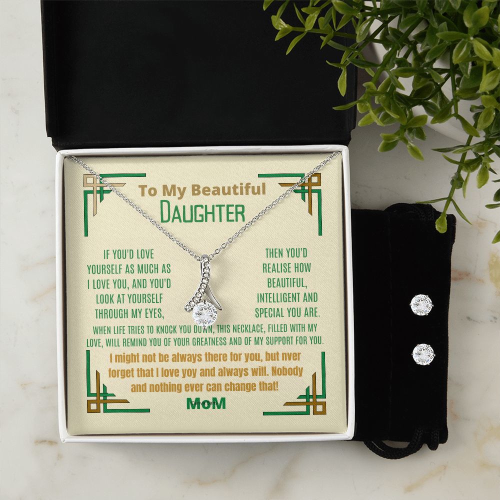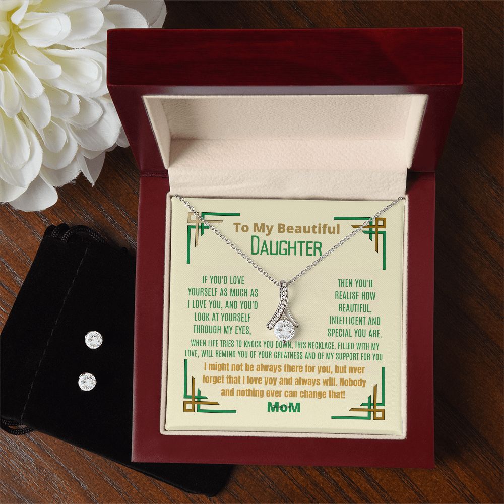 Imagine her reaction when your loved one opens this stunning gift! The Alluring Beauty Necklace and Cubic Zirconia Earring Set is a sweet treat that is sure to dazzle your special someone! The necklace and earring pairing provides loads of sparkle when worn together or separately, and is perfect for any occasion! Do not miss out on this special offering!