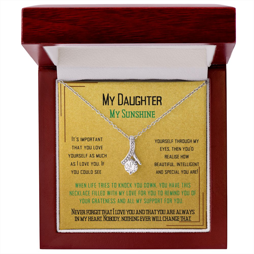 Imagine her reaction when she opens this stunning gift! The Alluring Beauty necklace features a petite ribbon shaped pendant that is sure to dazzle your special someone. Whether it's a birthday or anniversary, make sure to get her a gift she will love for years to come.