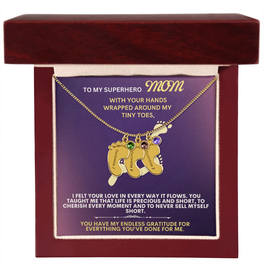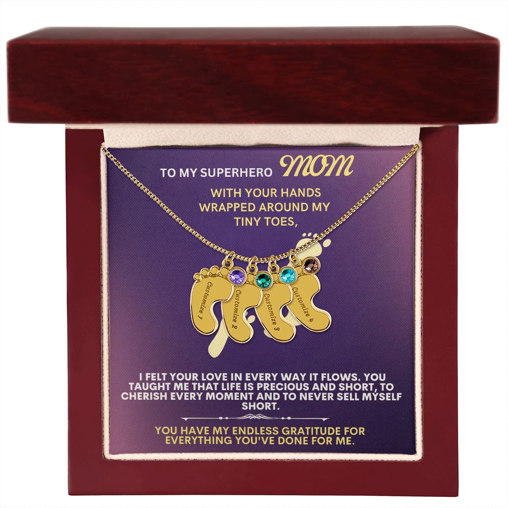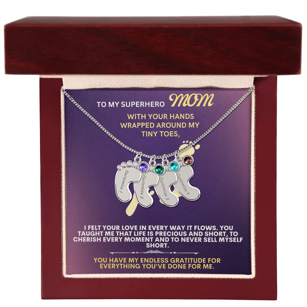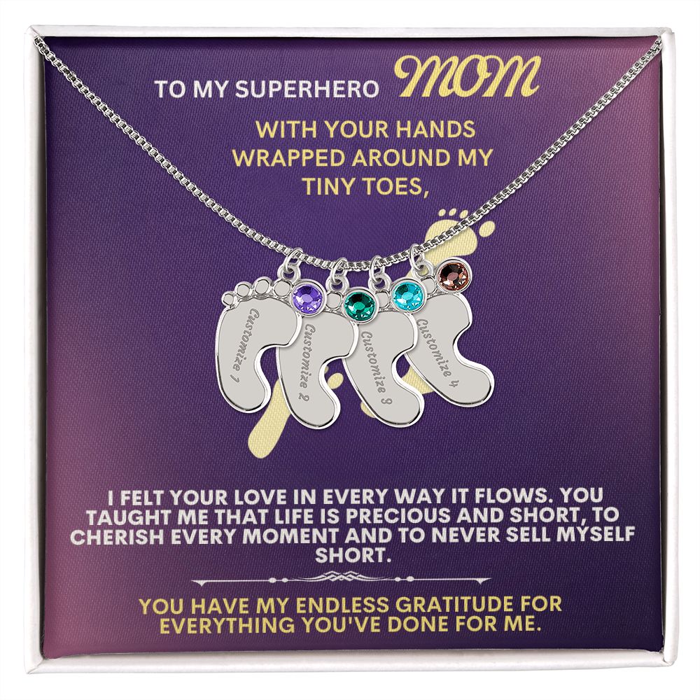 Celebrate the arrival of a newborn or cherish a precious memory with our Custom Baby Feet Necklace with Birthstone. Personalize your gift by engraving a name of your choice onto the pendant and choosing a crystal that correlates with the baby's birth month. And by picking multiple pendants, a custom present like this is perfect for moms and grandmothers with big families. This is a one-of-a-kind keepsake that will be treasured for a lifetime!