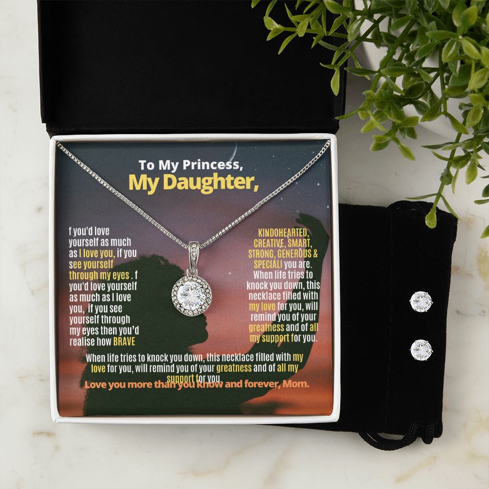 Surprise your loved one with a stunning gift that will make her heart swell! Our dazzling Eternal Hope Necklace and Cubic Zirconia Earring Set is an eye catching pair that can be worn together or separately, adding sparkle and elegance to any occasion! Don't miss out on this spectacular offering!
