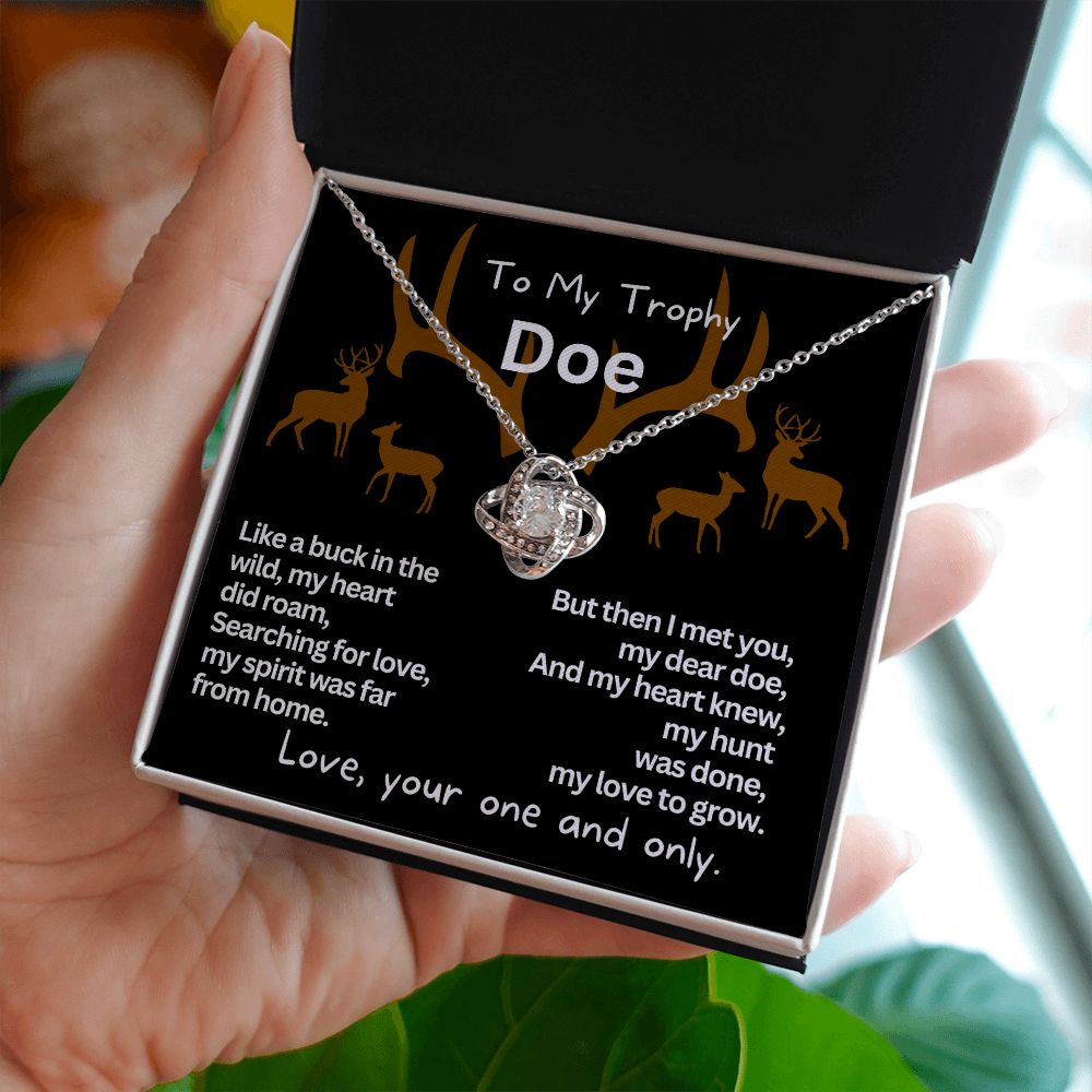 Imagine her reaction receiving this beautiful Love Knot Necklace. Representing an unbreakable bond between two souls, this piece features a beautiful pendant embellished with premium cubic zirconia crystals. Surprise your loved one with this gorgeous gift today!