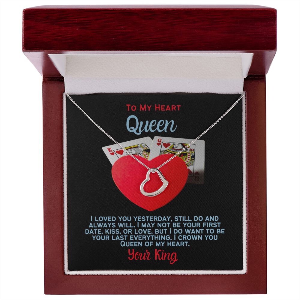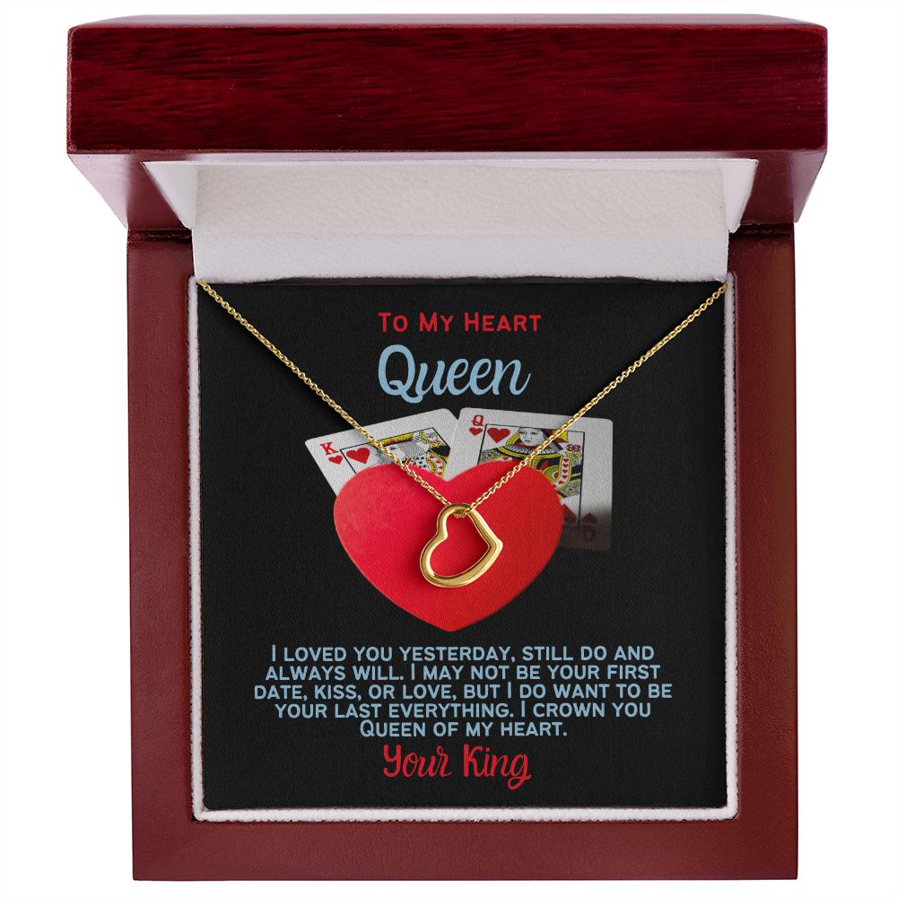 Imagine her delight when she sees this beautiful Delicate Heart Necklace, lovingly crafted in sterling silver and dipped in 14k white gold or 18k yellow gold for added luxury. This piece is pure elegance wrapped up in timeless simplicity. Trends may come and go, but this piece will last a lifetime with its classic subtle beauty.