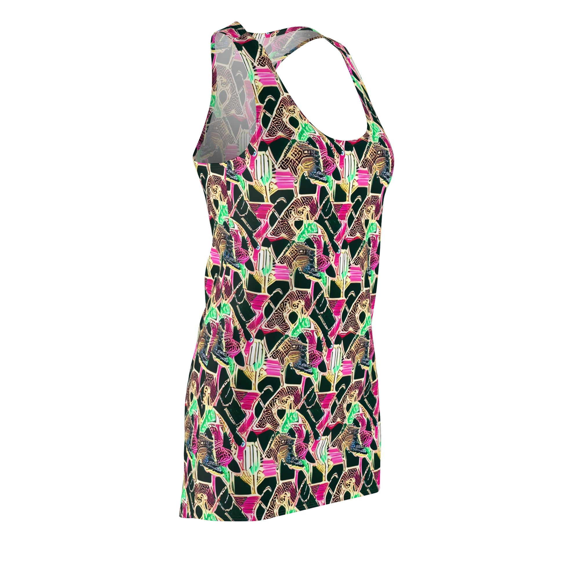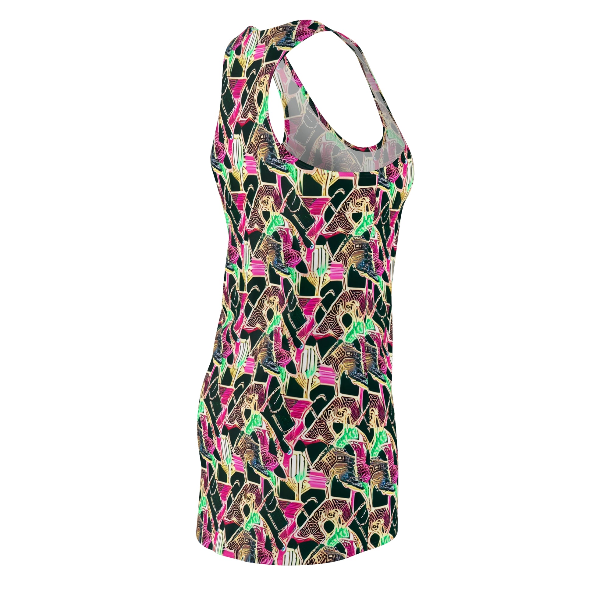 A feminine and stylish, yet really comfortable dress. This high quality AOP racerback dress is appealing from every angle. Inspired by the freedom of creativity, it will instantly become everyone's alltime favorite.