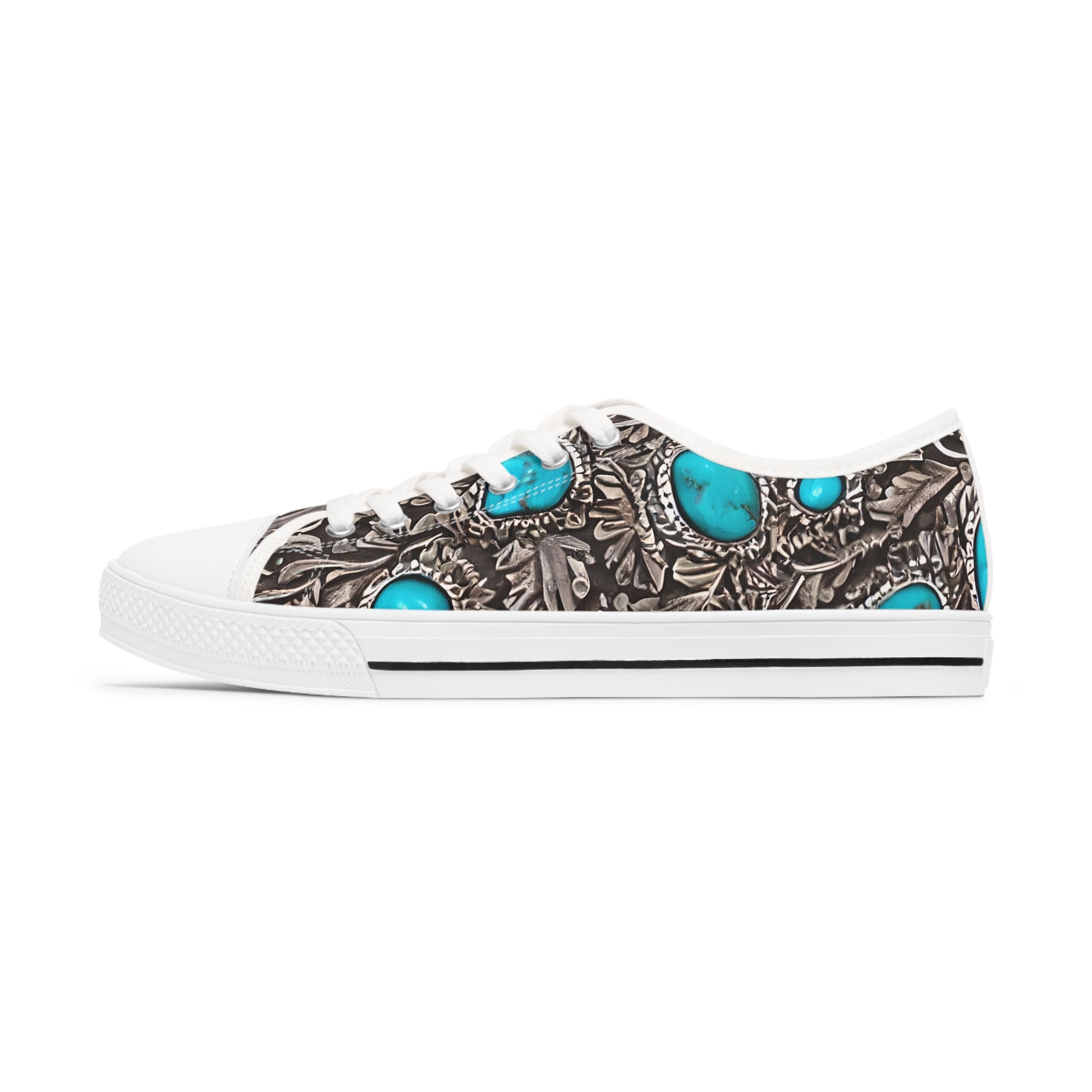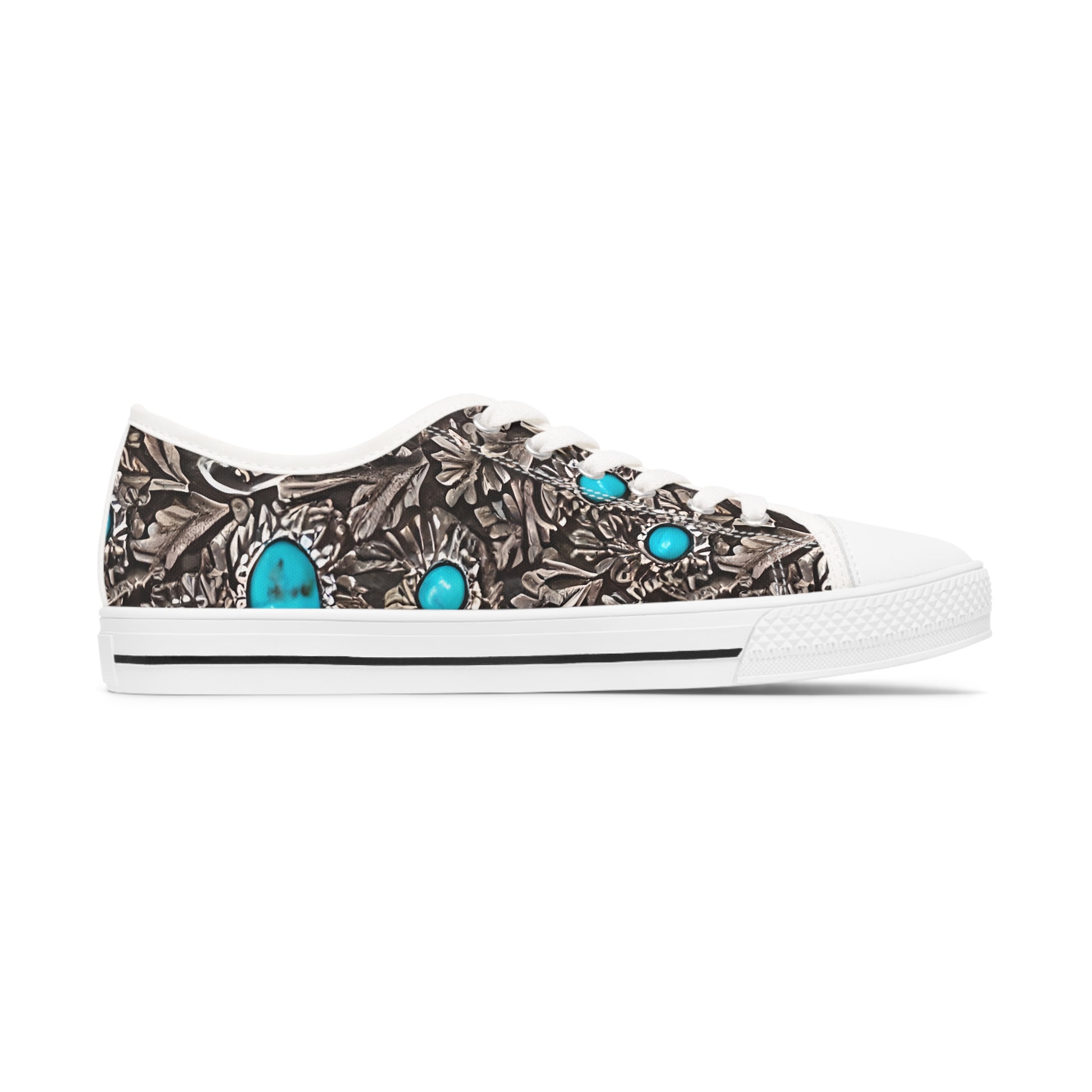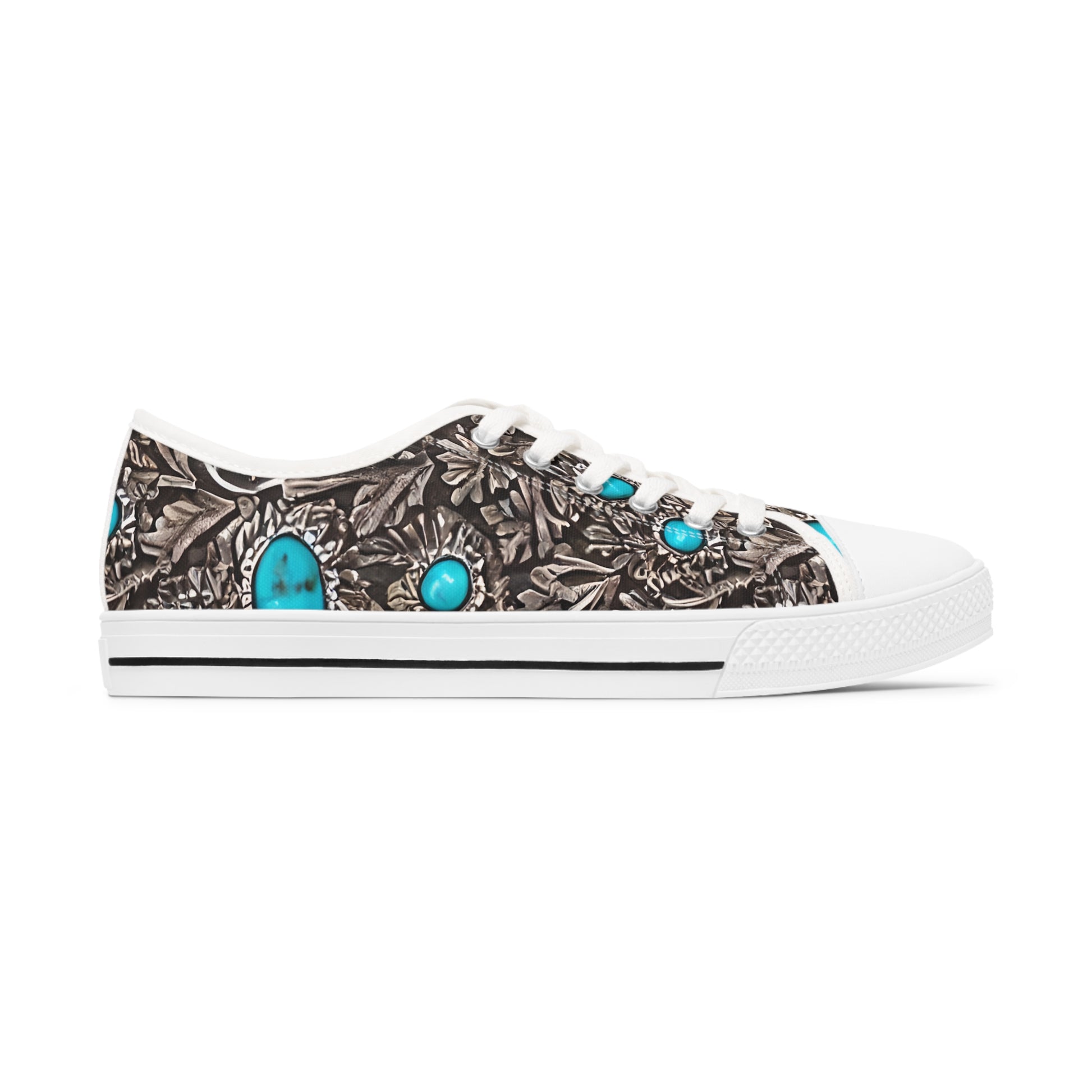 Made with breathable polyester canvas and featuring hi-poly deodorant memory foam insoles, these women's low top sneakers bear all the marks of an awesome shoe. Choose between black or white sole and laces, and enjoy the silver metal eyelets along with the lace-up closure. Add your designs and bring a bespoke staple to life.