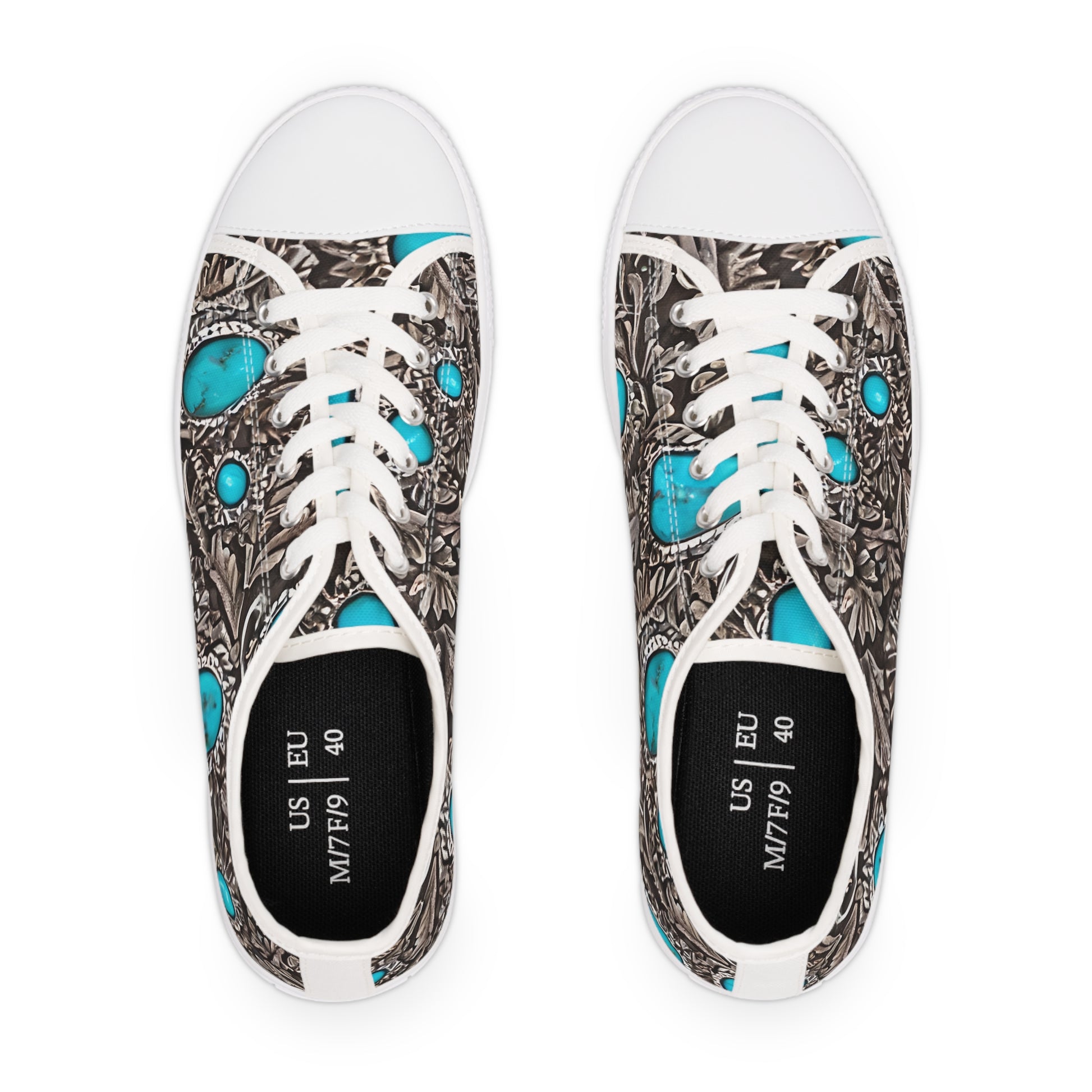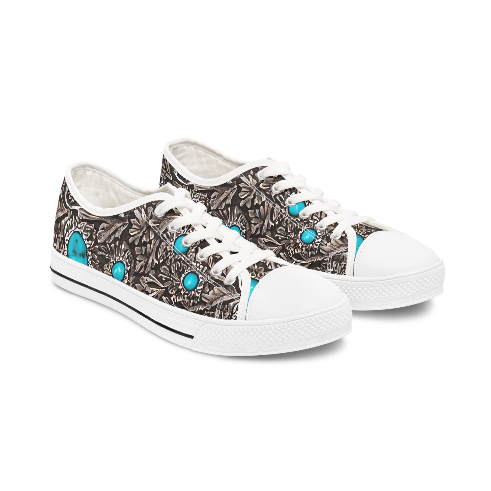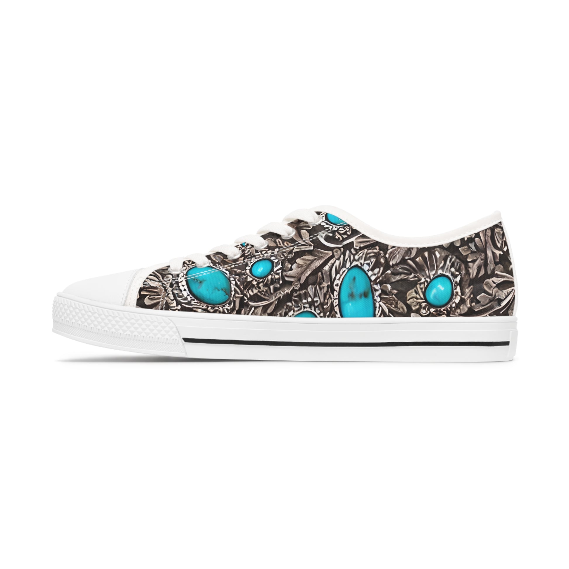 Made with breathable polyester canvas and featuring hi-poly deodorant memory foam insoles, these women's low top sneakers bear all the marks of an awesome shoe. Choose between black or white sole and laces, and enjoy the silver metal eyelets along with the lace-up closure. Add your designs and bring a bespoke staple to life.